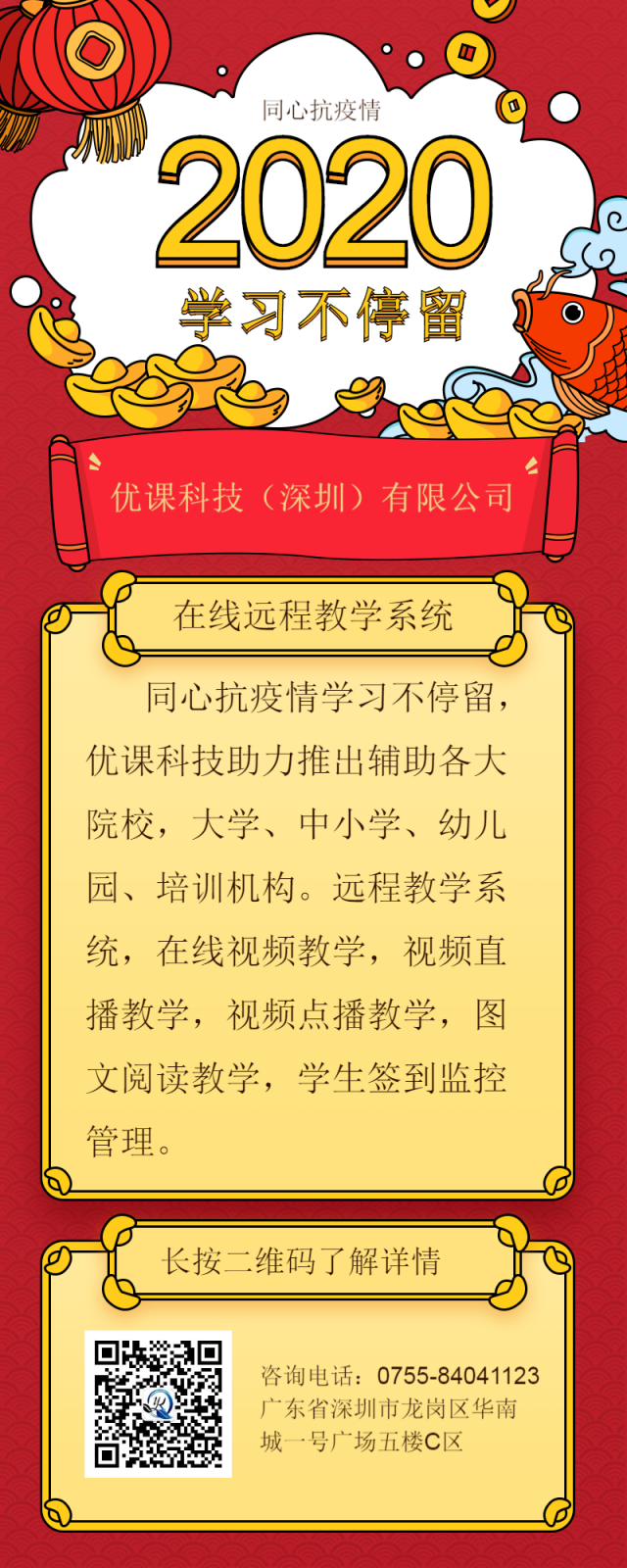 同心抗疫情學(xué)習(xí)不停留,優(yōu)課科技助力推出輔助各大院校,大學(xué)、中小學(xué)、幼兒園、培訓(xùn)機(jī)構(gòu)。遠(yuǎn)程教學(xué)系統(tǒng),在線(xiàn)視頻教學(xué),…
